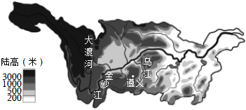 6.1935年1月遵義會議后,紅軍四渡赤水,巧渡金沙江,強渡大渡河,飛奪瀘定橋,翻雪山,過草地,最終擺脫了國民黨軍隊的圍追堵截。圖示意我國長江流域地形。讀圖完成11~13題。